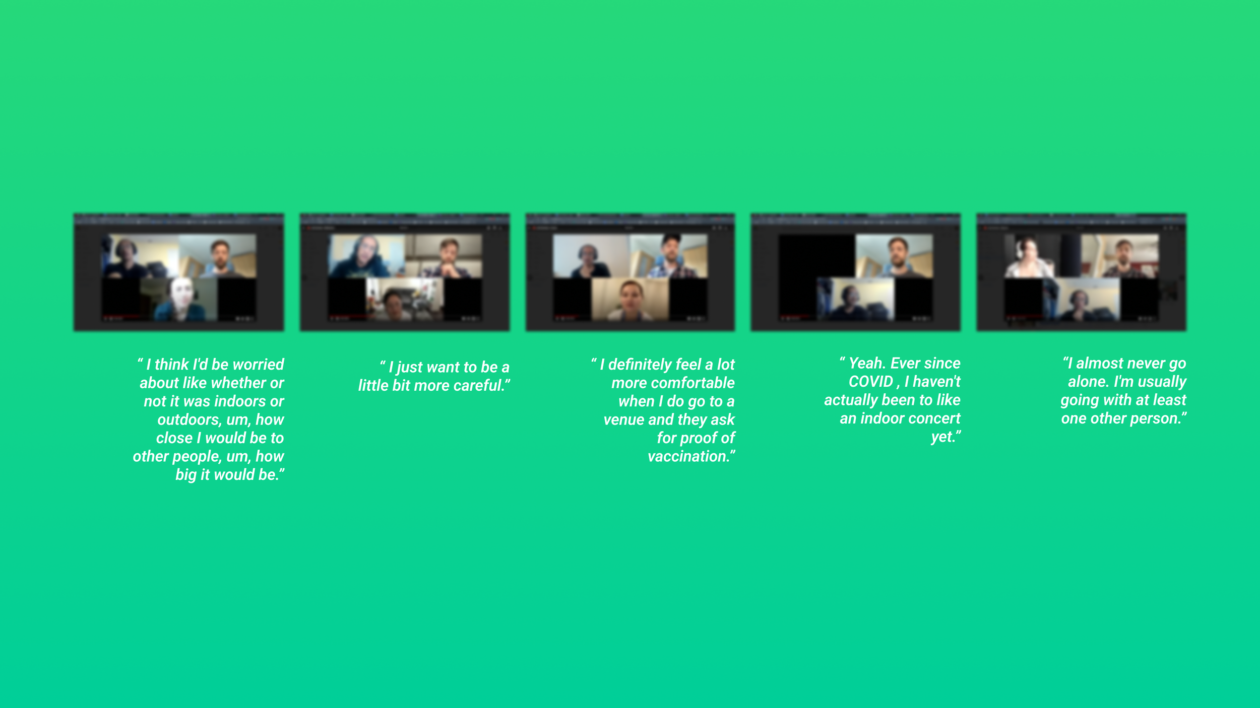 We carried out a thirty-minute interview to understand the mental model and context of frequent concertgoers. A survey was sent out on social media platforms like Facebook, Reddit, and Slack filtering out people who went to concerts and shows regularly.